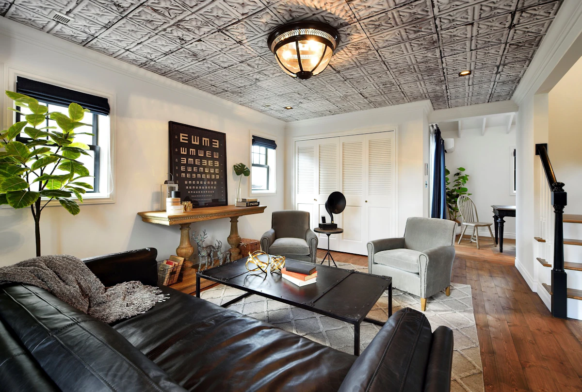 レンガやコンクリートの質感と金属パイプで骨格を強調し、無骨ながらも温かみを感じる空間を演出します。