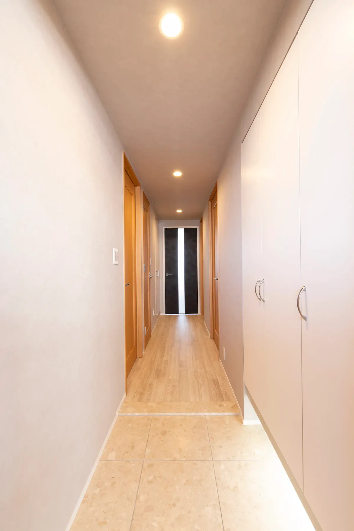 グレーを基調とした、トレンドを抑えたホテルライクな内装に仕上げました。夫婦二人でも、家族が増えても安心してお住まいいただける2LDKのマンションモデルルームです。