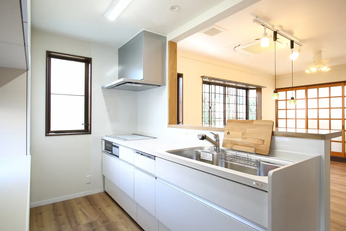 工事では、和室を除く全室の内装と、キッチン・浴室などの水回り設備を一新。床は安全性を考えてフローリングに変更しました。家族の団らんの中心となるダイニングには床下暖房を設置し、寒い時期も快適に過ごせるようにしています。